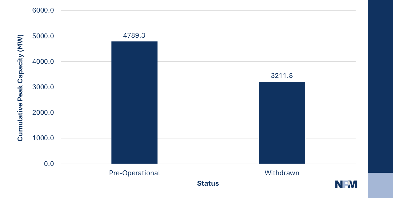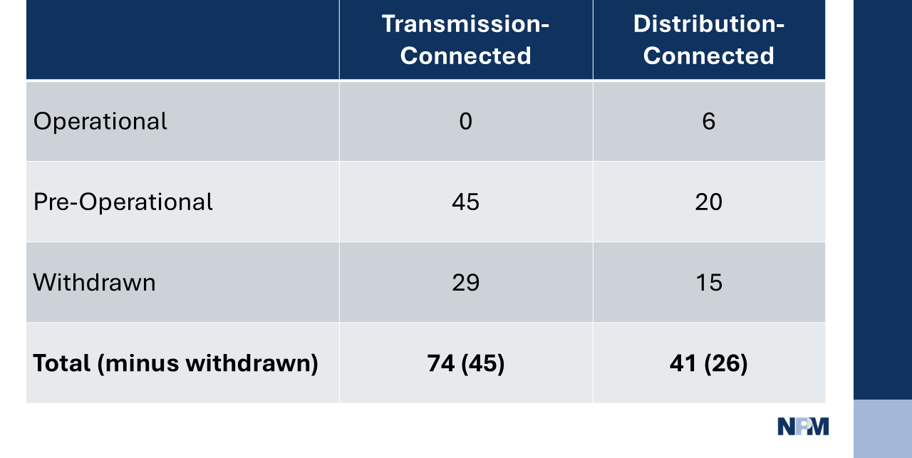 When it comes to distribution-connected data centers, although the cumulative totals are inherently much smaller, they do feature operational data centers alongside pre-operational and withdrawn requests.