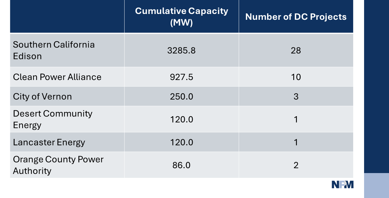 Table 2 – The cumulative capacity and number of pre-operational DC projects for each load serving entity.
