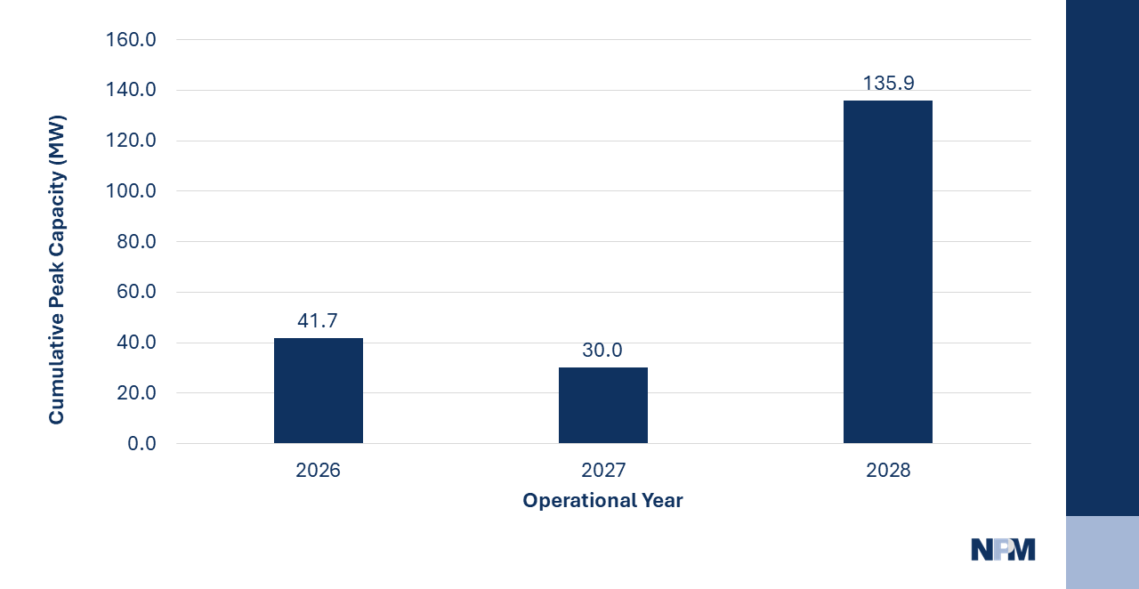 Graph 3 – The cumulative capacity of pre-operational distribution-connected DCs hoping to connect to the grid between 2026-2028.